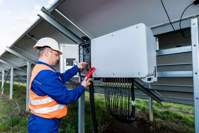 Střídače, měniče, regulátory, svodiče, ale také terminály, rozvodné skříně, držáky, průchodky a veškerý další materiál pro realizaci výstavby velké i malé fotovoltaické elektrárny.